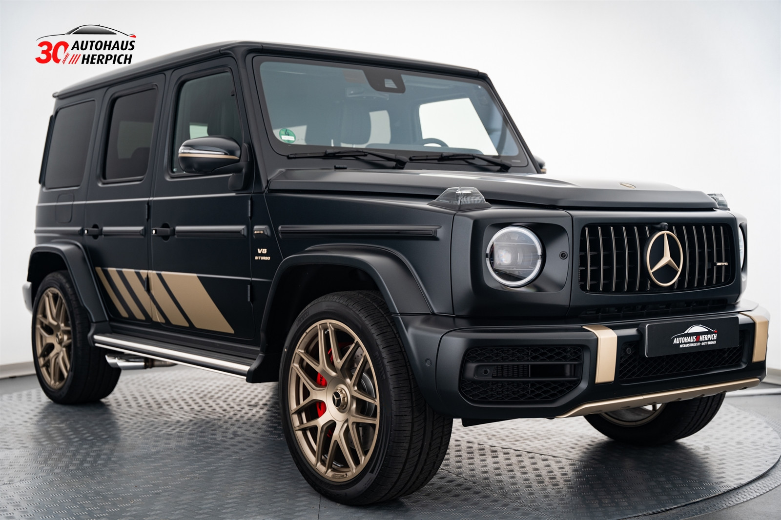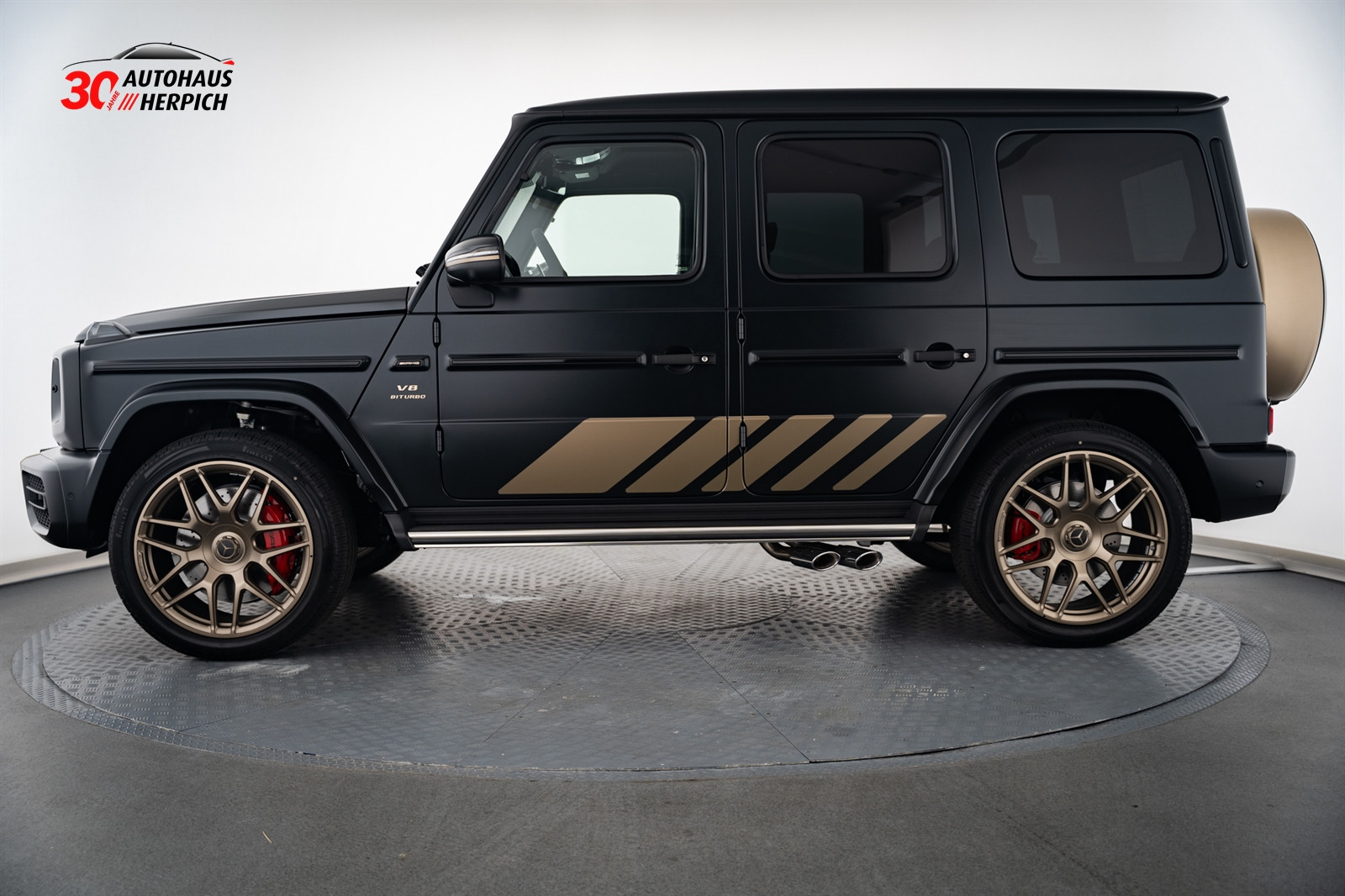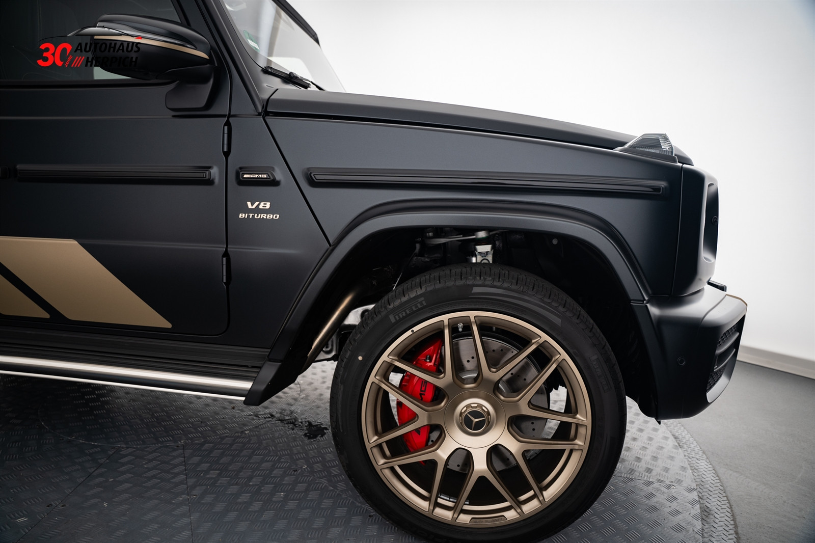 - 7U7 AMG Wappen auf der Motorhaube und Typographie am Fahrzeug in Kalaharigold Magno
