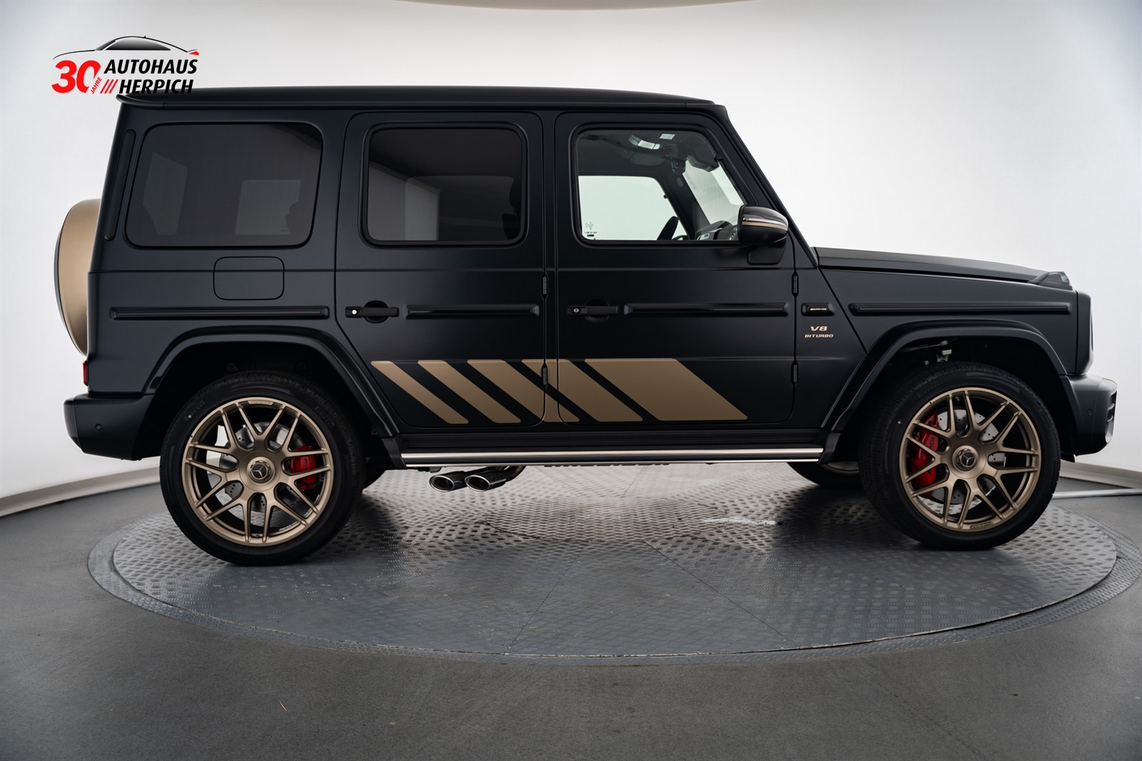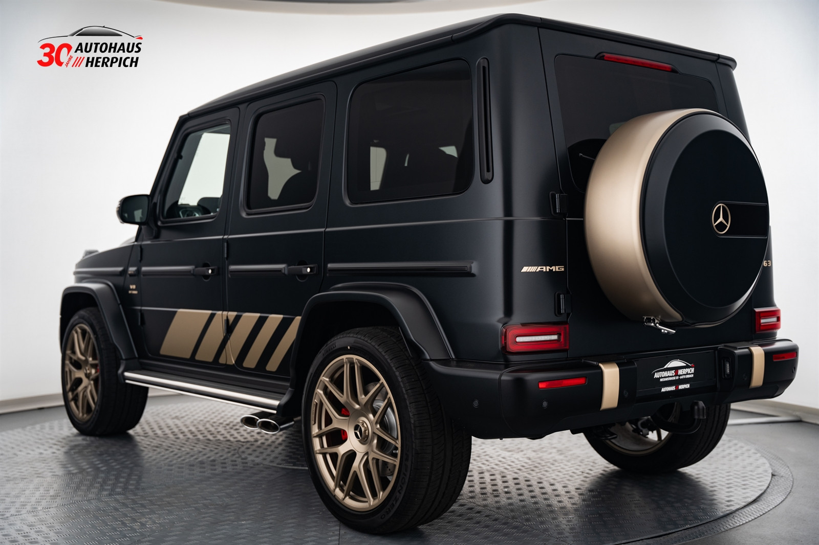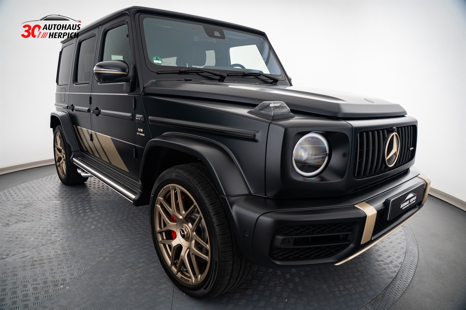 - 7U7 AMG Wappen auf der Motorhaube und Typographie am Fahrzeug in Kalaharigold Magno